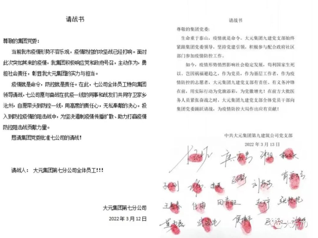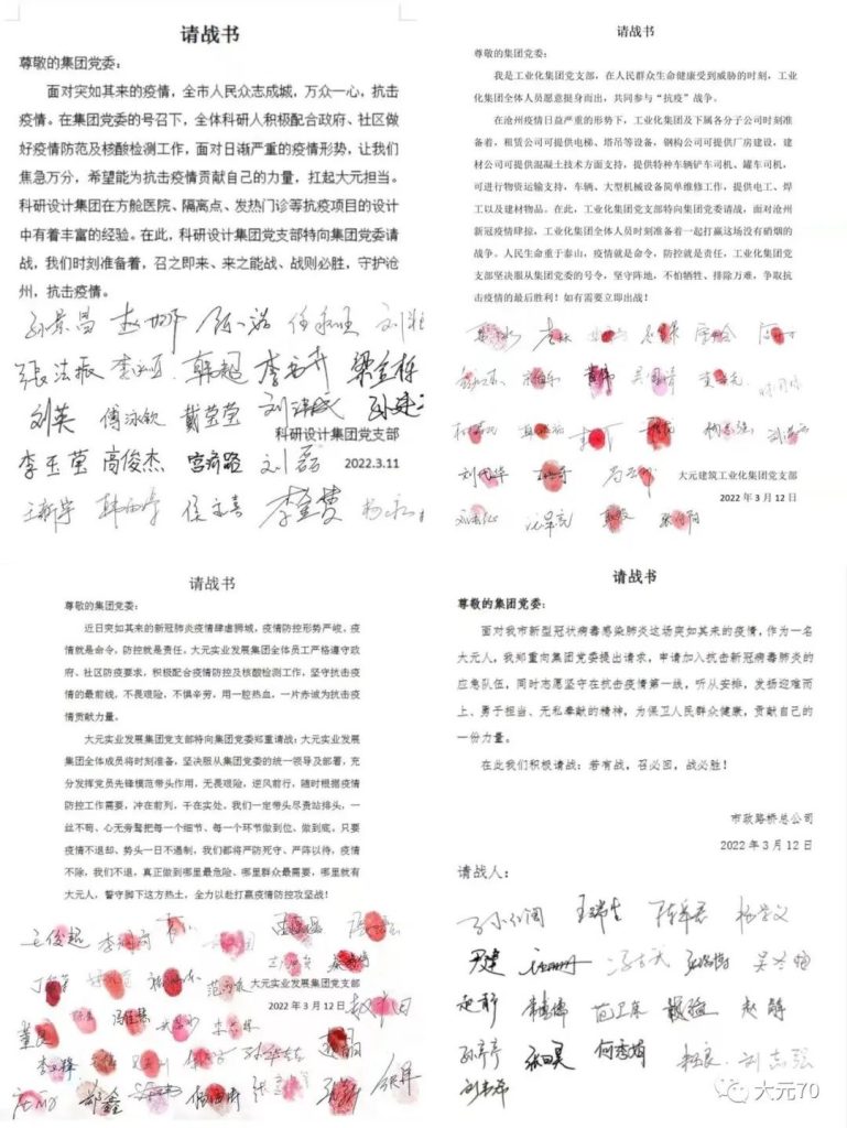 大元四建、科研設計集團、七公司、建筑工業化集團,市政路橋總公司、實業發展集團、九公司紛紛請戰。如果組織需要,堅決聽從安排,服從統一調配,全力以赴,堅守一線。
