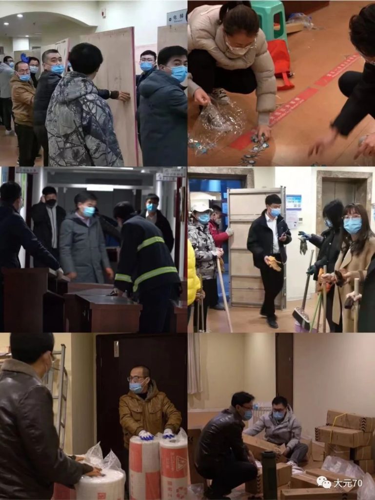 時間緊、任務重。3月17日,中午12:00,大元集團黨委書記、董事局主席李建國為總指揮、黨委副書記于宙為副總指揮,趕赴現場進行工作安排。元正文旅集團董事長張容強、元正公司總經理李雙慶積極調配37名工人,集團宿舍員工、開元一期員工及開元二期員工20余人主動加入隊伍,50余人迅速集結完畢。成立協調溝通、現場保潔、用品采購、人員調配、水電維修、網絡設備、宣傳策劃、供餐保障等小組,各小組收到任務后迅速行動。