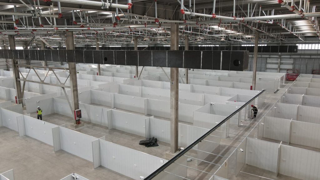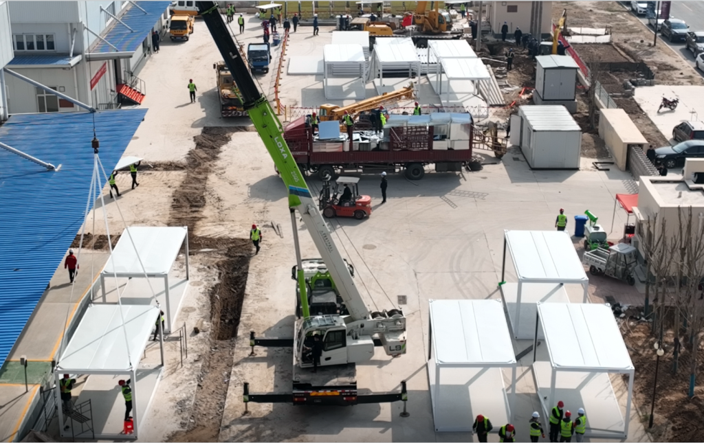 自4月3日進場,歷經80小時,救治區1#倉庫隔墻板及及通風完成全部安裝;標準廂房安裝完成40%,垃圾場等配套設施同步進行,為打贏項目建設攻堅戰奠定堅實基礎。