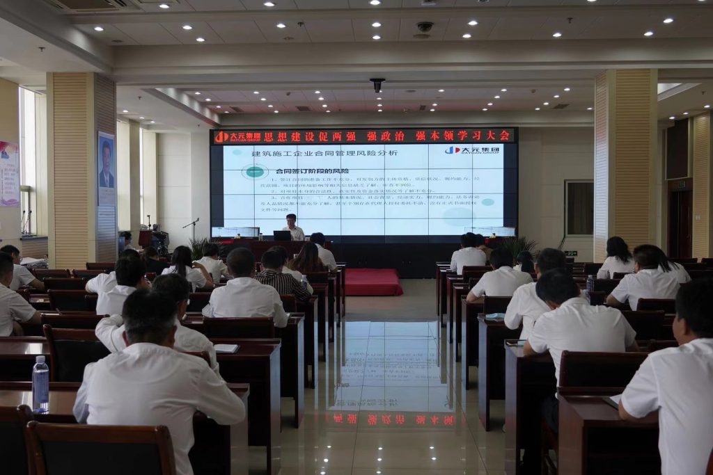 5月19日下午,大元建業集團常務副總裁湯長禮進行授課,主題為《合同履約過程中的風險辨識及應對措施》?;顒硬扇【€下+線上形式開展,在滄單位一把手、經營副總現場參加,釘釘群同步轉播,各集團、各單位班子、經營、財務體系線上學習。