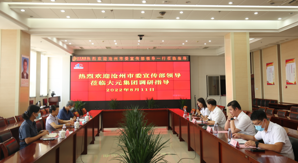 座談會上,觀看大元集團宣傳片、方艙醫院紀實、封壇大典等視頻。李主席首先對市委宣傳部領導一行的到來表示歡迎,對市委宣傳部歷年來對集團的關注和支持表示感謝并介紹大元集團基本情況及黨建文化建設。