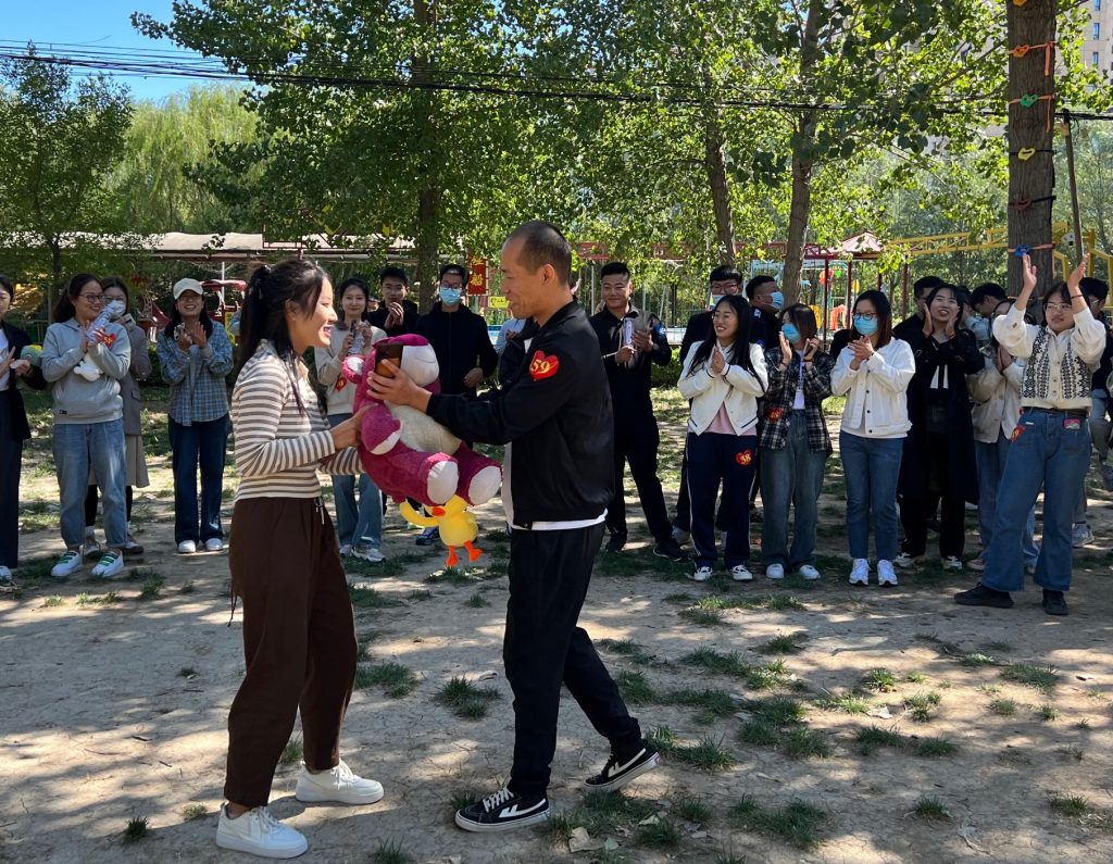 最激動人心的時刻——“浪漫告白”。活動現場,一位男嘉賓主動表達了自己的心意,并將手中的玩偶送給心儀女孩。在受到第一對青年的鼓舞,現場不斷涌現出更多的告白者。