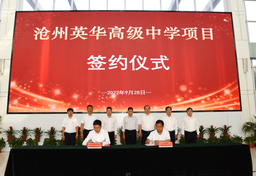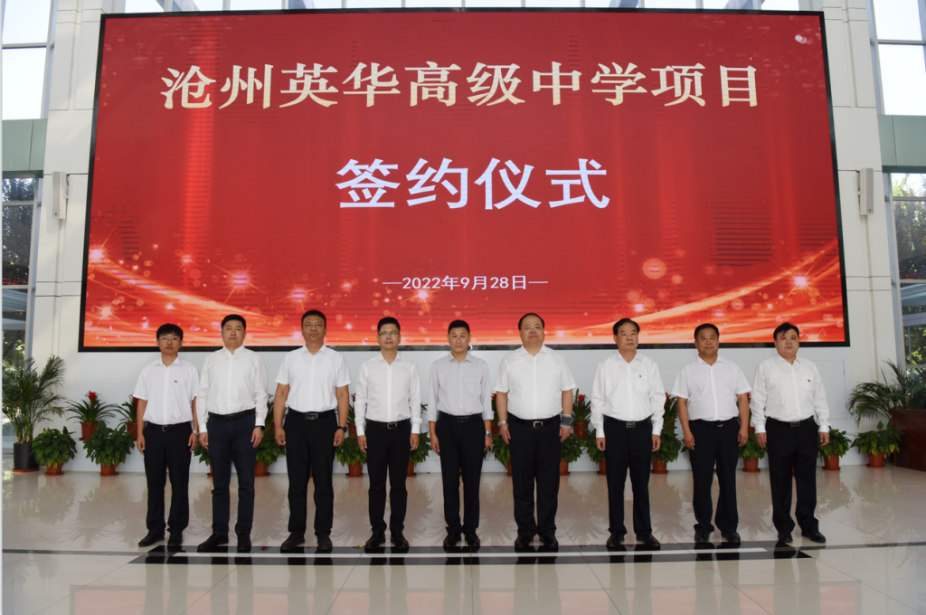 9月28日上午,滄州市經(jīng)濟開發(fā)區(qū)管委會隆重舉行滄州英華高級中學(xué)項目簽約儀式。滄州市人民政府副市長尹衛(wèi)江、滄州經(jīng)濟開發(fā)區(qū)黨工委書記、管委會主任趙寶良、黨工委委員、副主任蔣福森、李長鑫、投資促進局局長孫博、大元集團黨委書記、董事局主席李建國、大元投資集團副總裁郝書明、大元實業(yè)發(fā)展集團總裁王俊超、衡水市教育機構(gòu)校長高輝、河間市英華高級中學(xué)校董許紅東等人參加簽約儀式。