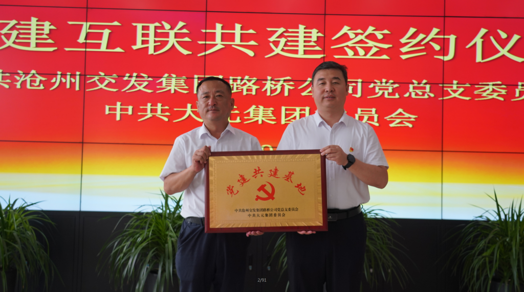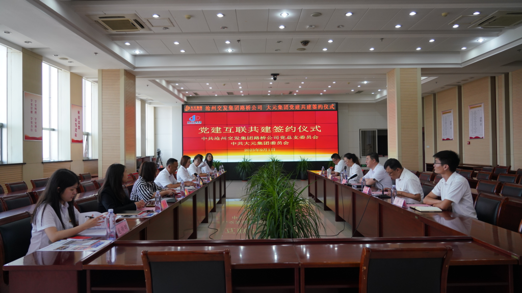 9月1日上午,大元集團與滄州交發集團路橋公司黨建共建簽約儀式在大元集團總部15樓會議室成功舉辦。