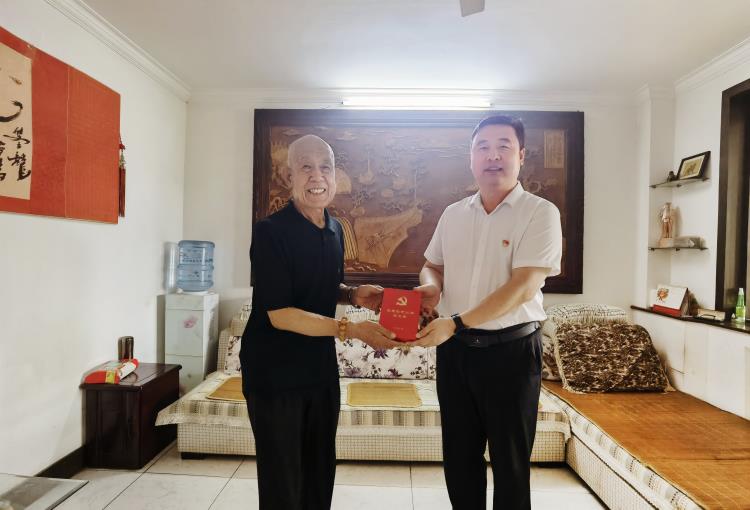 為弘揚黨的光榮傳統和優良文化,進一步激發黨員政治熱情,堅定永遠跟黨走的信心和情懷,7月5日,大元集團黨委副書記于宙帶領三建總公司總經理郭啟政、黨群文化中心副總監張靜媛前往慰問“光榮在黨50年”老黨員白永林并送去紀念章,同時贈送《大元傳》和《大元文化語錄》。